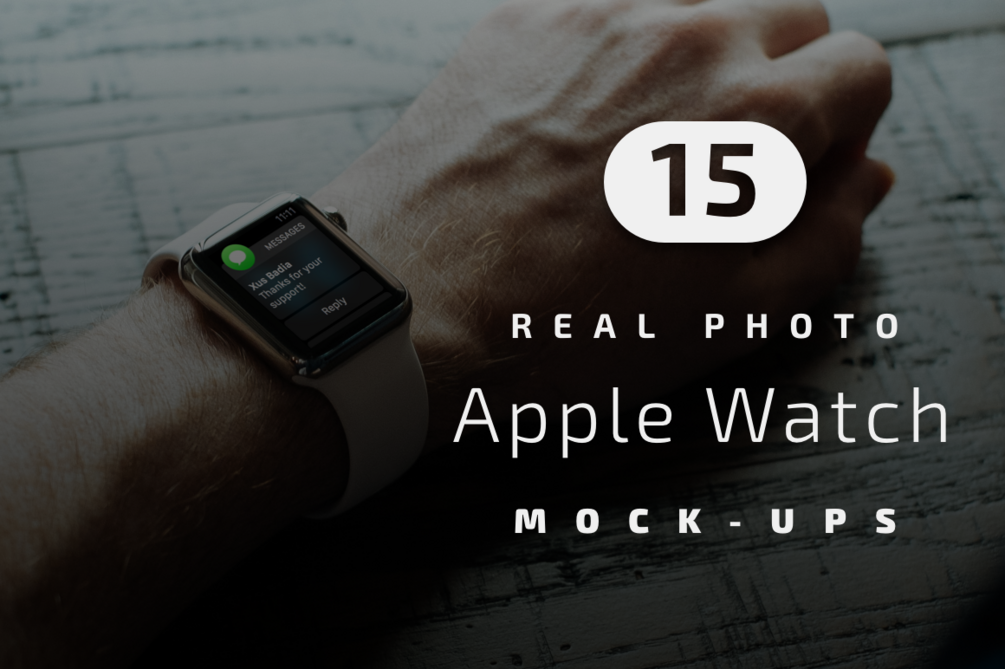 A set of 15 real-photo Apple Watch mockups. The photos are from the amazing site Unsplash.